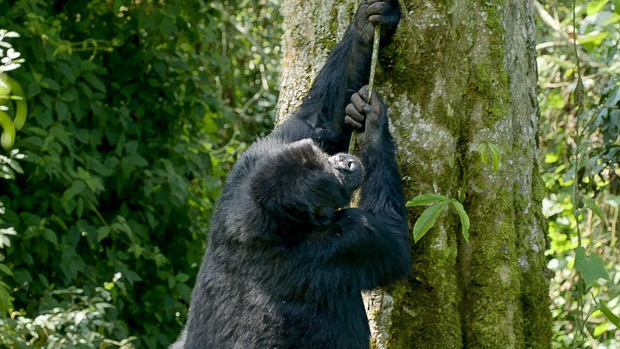 In this amusing clip from the BBC Earth nature series, Gorilla Family and Me, Scottish wildlife filmmaker Gordon Buchanan watches as a family of silverback gorillas struggle to climb up trees.