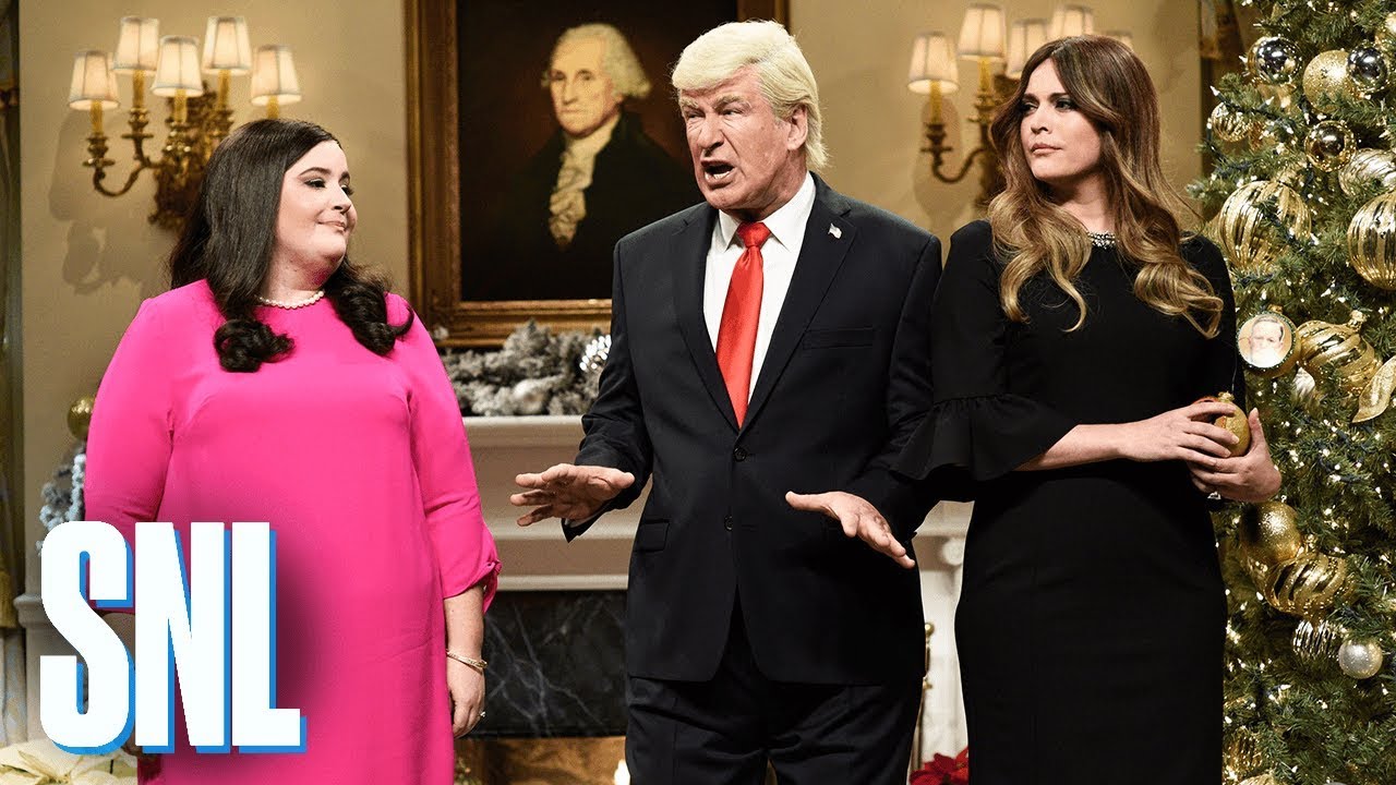 President Trump (Alec Baldwin) and First Lady Melania Trump (Cecily Strong) trim this year’s White House Christmas tree with help from Donald Trump, Jr. (Mikey Day), Ivanka Trump (Scarlett Johansson), Eric Trump (Alex Moffat), Kellyanne Conway (Kate McKinnon), and more.