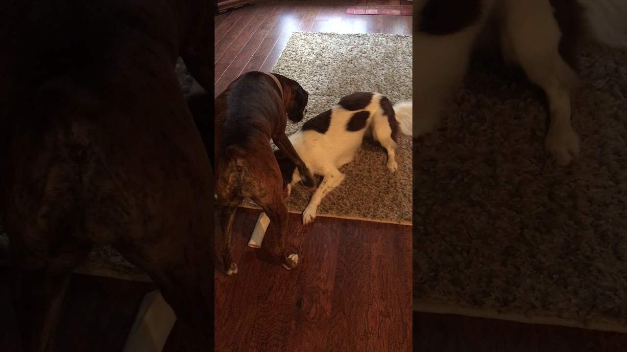 When her human gets home from work, Bella, the border collie, runs to the neighbor’s door to ask her best friend, Pippa, the boxer, can come out and play. Watch a short video of Bella and Pippa playing, below.
