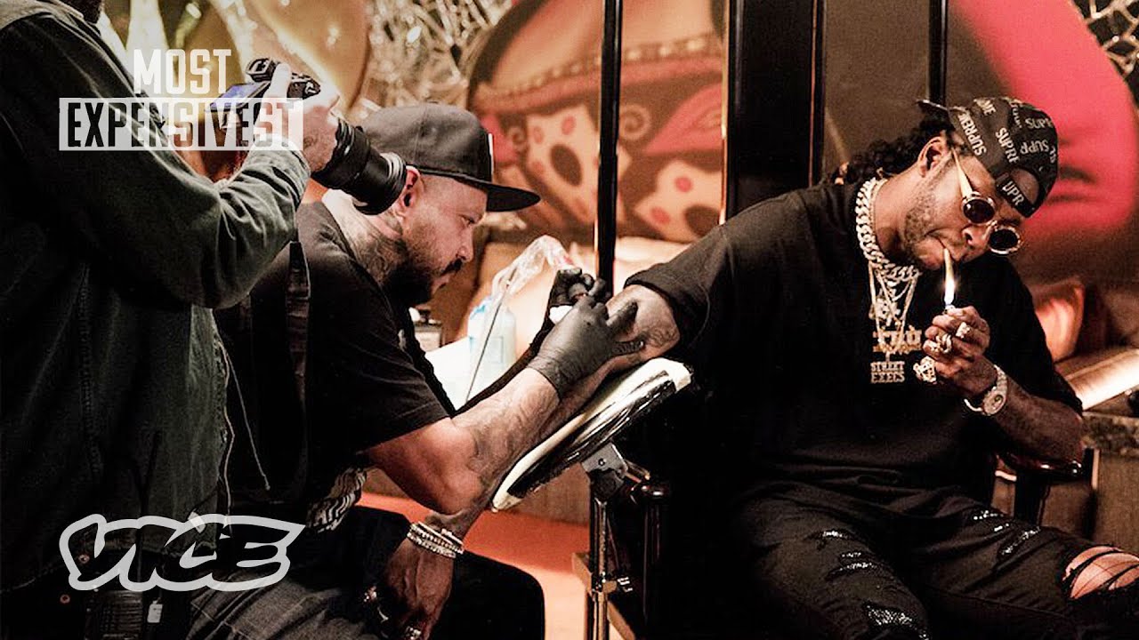 In this clip from the latest episode of Viceland’s “Most Expensivest” series, host 2 Chainz visits the Hart & Huntington tattoo shop in Las Vegas to get two symbolic tattoos with the world’s most expensive tattoo ink.
