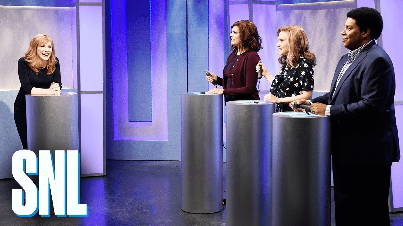 Three contestants try to figure out if the things Donald Trump does and says even matter anymore on the game show, What Even Matters Anymore, hosted by Veronica Elders (Jessica Chastain).