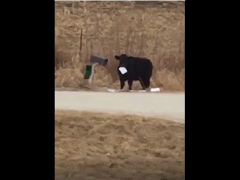 Erin Hudson from Afton, Iowa shared this hilarious video of one of her family’s cows snacking on mail from the mailbox, then taking off with a letter in his mouth when he realizes he’s in trouble.