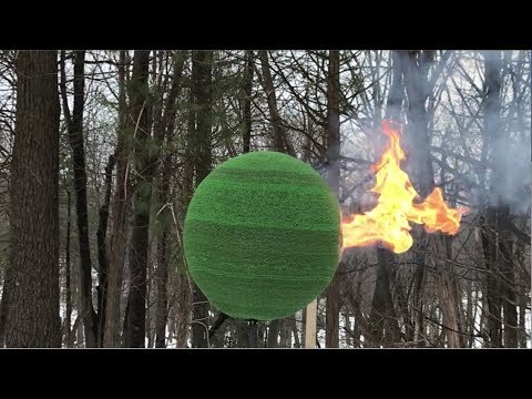 New York-based artist Ben Ahles spent many hours gluing together individual matchsticks to create a wrecking ball-sized sphere that he then lit to create an amazing ball of fire.