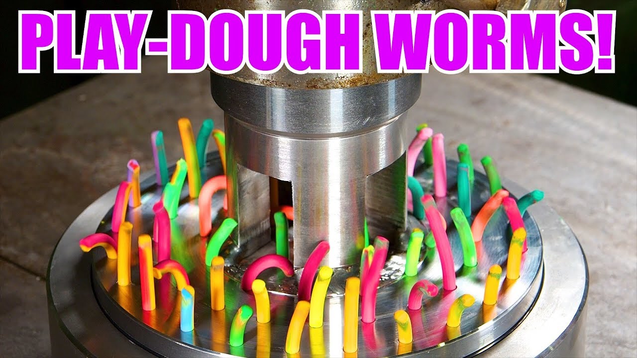 Finnish machine shop owner Lauri Vuohensilta from the popular Hydraulic Press Channel uses a special hydraulic press attachment to make oddly satisfying “worms” out of various objects, including Play-Doh, gummy bears, slime, and more.