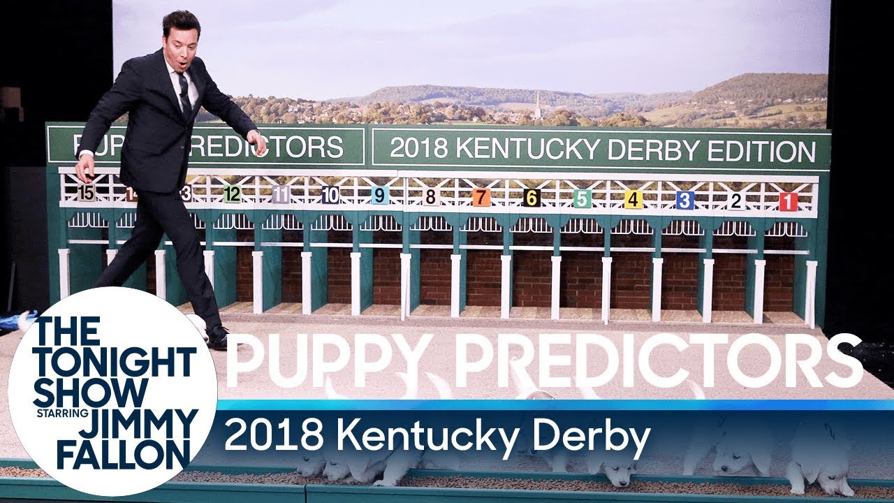 Tonight Show host Jimmy Fallon welcomes back his adorable golden retriever “Puppy Predictors” to predict the outcome of this Saturday’s 144th running of the Kentucky Derby horse race.