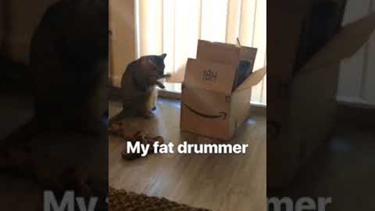 Brandi Chinen from Phoenix, Arizona shared this short but hilarious video of her rotund feline, Babylove, drumming her heart out on a cardboard box.