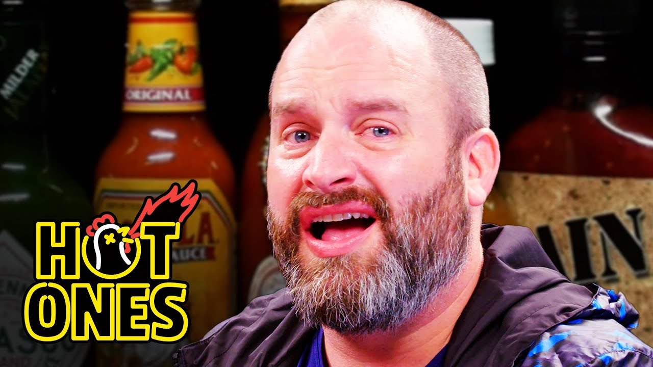 Comedian Tom Segura Tears Up While Attempting Hot Ones’ Spicy Wing Challenge