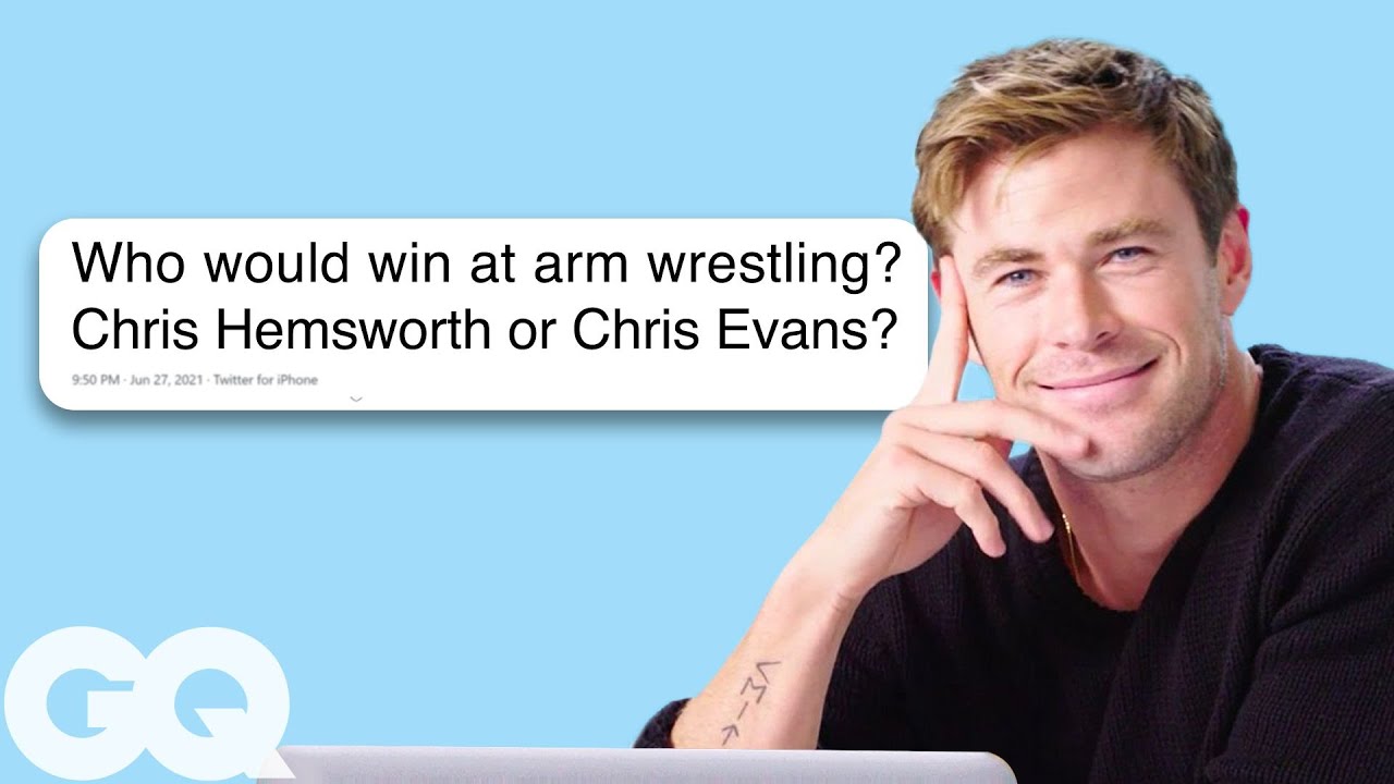 (PG-13: language) In the latest edition of GQ Magazine‘s “Actually Me” series, Australian actor Chris Hemsworth responds to real comments that have been posted about him on popular social websites, including Twitter, Answers.com, YouTube, and more.