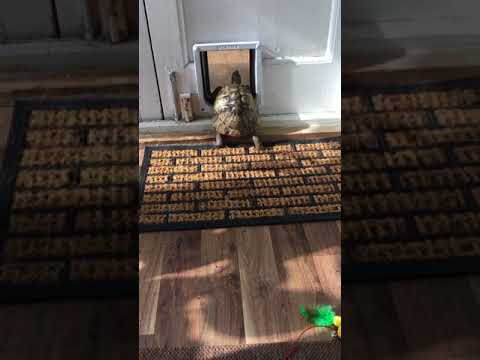 In this amusing video from North Lincolnshire, England, Stanley, the pet tortoise, figures out how to use the cat door after watching his best friend, Tommy, the cat, walk through it.