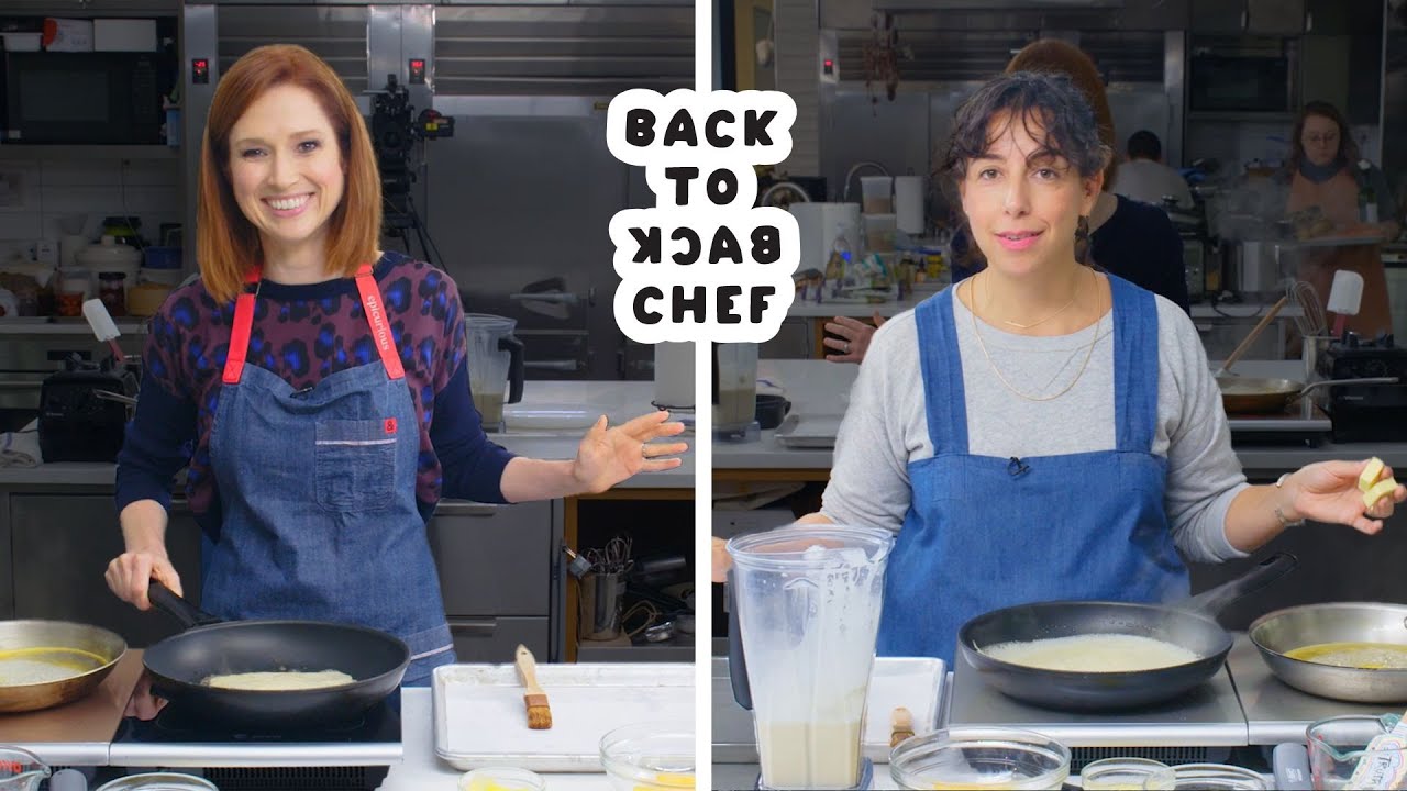 In the latest edition of Bon Appétit‘s “Back-to-Back Chef” series, chef Carla Music attempts to teach actress and amateur cook Ellie Kemper (The Office, Unbreakable Kimmy Schmidt) how to make crepes using only verbal instructions.