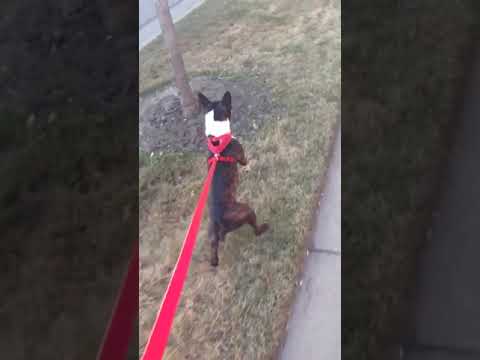 In this amusing video from St. Albert, Alberta, Canada, Molly, the Boston terrier, gets a little too excited during her morning walk and takes off running on her hind legs.