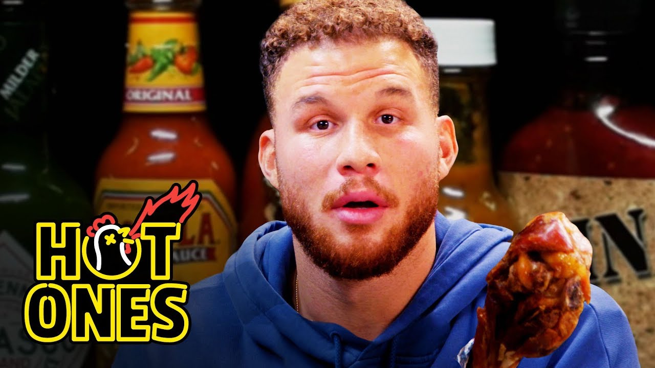 “Happy Turkey Day, spice lords, and welcome to the 3rd Annual Hot Ones Thanksgiving Special! Gracing the hot seat this holiday is Detroit Pistons power-forward Blake Griffin. He’s a five-time NBA All-Star, former No. 1 overall draft pick, and Slam Dunk Champion. But how is he with spicy food? Find out as Griffin takes on the wings of death and talks about everything from his burgeoning stand-up comedy career, to that time he dunked over a Kia Optima. Will he posterize Da Bomb, or get rejected by the heat? “
