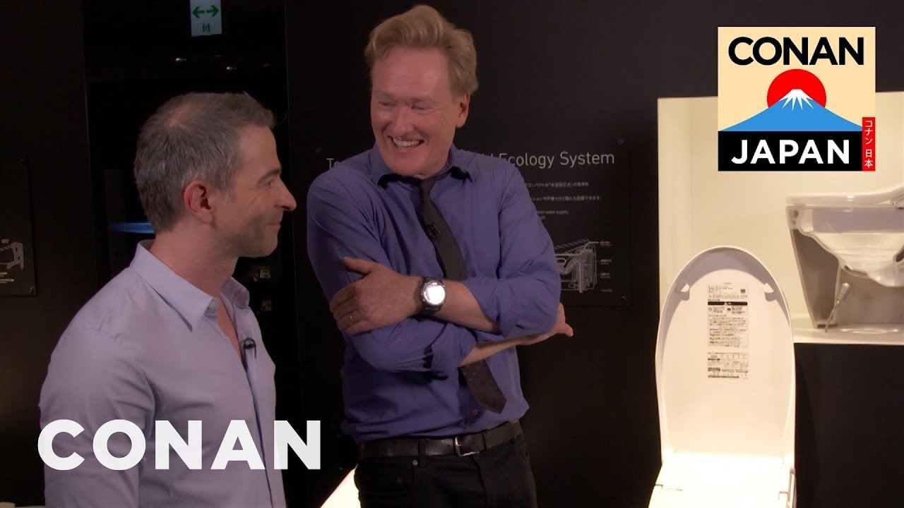 In another clip from the episode, below, Conan and his quirky associate producer Jordan Schlansky visit the Toto Toilet Showroom in Tokyo, Japan.