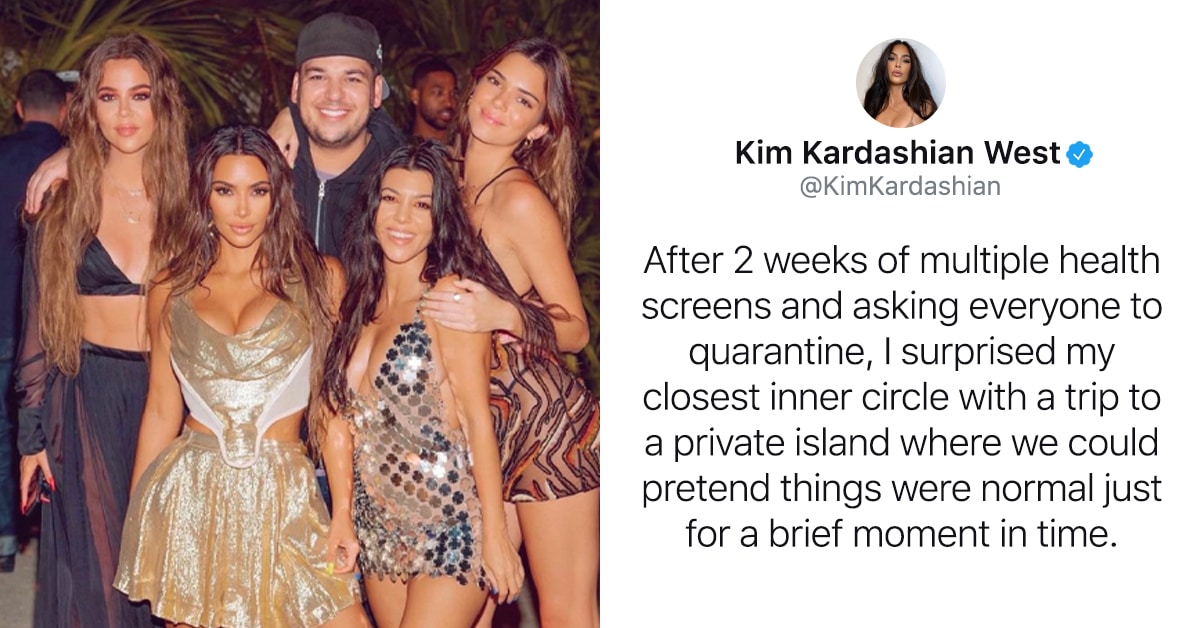 Kim Kardashian posted photos of her 40th birthday celebrations on Twitter and she instantly became a meme. She told fans that she had surprised her close inner circle with a trip to a private island after everyone had received health screenings and quarantined. The post became a meme sensation with people mocking the tone deaf tweet.
