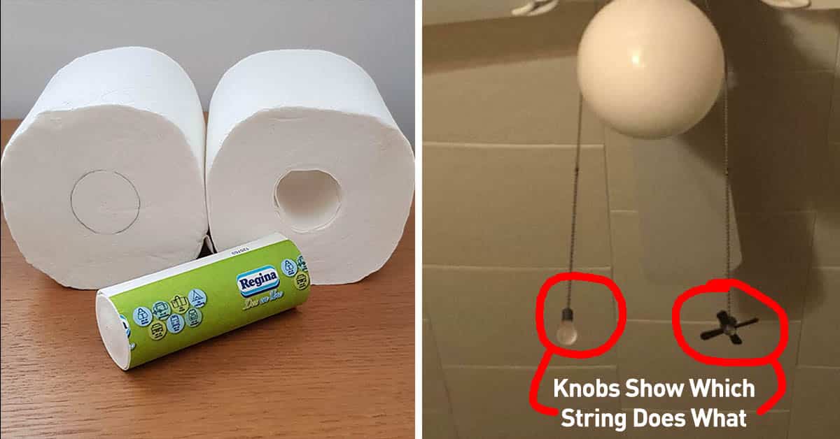 1. Whoever designed this toilet paper roll that includes a mini-roll inside, instead of a hollow tube.