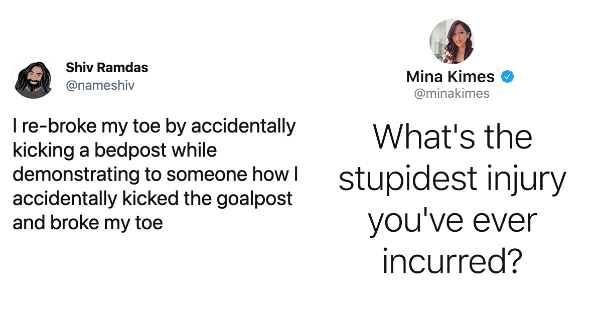 Many people who hurt themselves, however, can often look back and laugh at the dumb mistake they made. They’re fine now. You’re allowed to laugh at everyone tweeting about their pain and stupidity because they’re healthy and owning up to their dumbness.