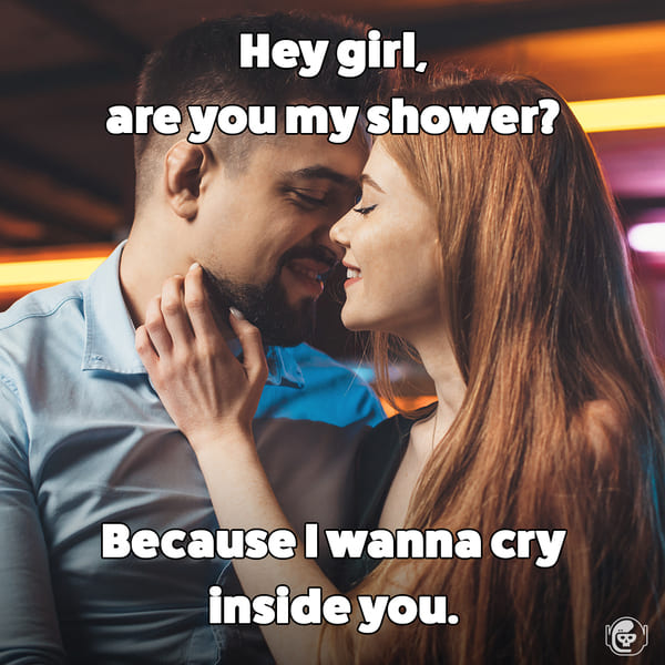 Are you my shower because I want to cry inside you, Funny self deprecating pick up lines, pick up artist fails, hilarious mean self-owns, dating, love, relationships