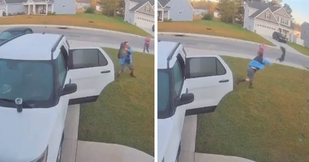 A new viral video shows a man yeeting a bobcat into his neighbor’s yard after it ran up and attacked his wife from behind.