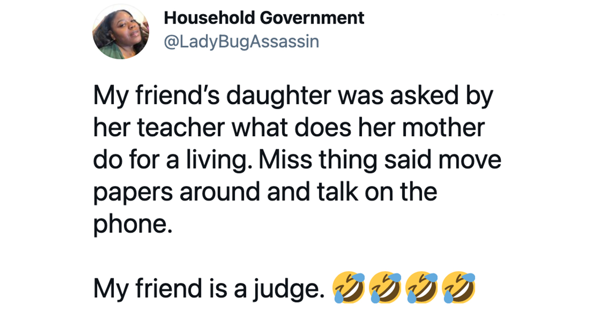 In what I recall as the most nightmarish episode of Rugrats, Tommy and Chucky become adults and go to work. They imagine that all adults do is rollerskate around the office and ride the elevators up and down. Eventually, they get “fired” and can only take the term literally, and think that the evil boss (played by Angelika) might cast them into the flames behind her. This cartoon, however great, was written by adults imagining what kids think about adults. In reality, kids describing adult work is hysterical and weird by comparison. In a viral tweet, @LadyBugAssassin explained what her friend’s kid thought their mom did for work. Eventually, everyone was sharing the funny things kids think adults do at the office.