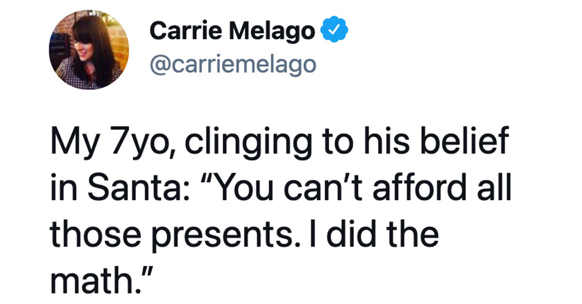 Whether you have kids or not, these tweets are hilarious. They might, however, make you think twice about bringing life into this world. Forget the imminent Climate Wars they’ll have to fight. These kids are going to rip your self-esteem out of your body and replace it with weird thoughts about the bounds of reality. Good stuff. I fear children.