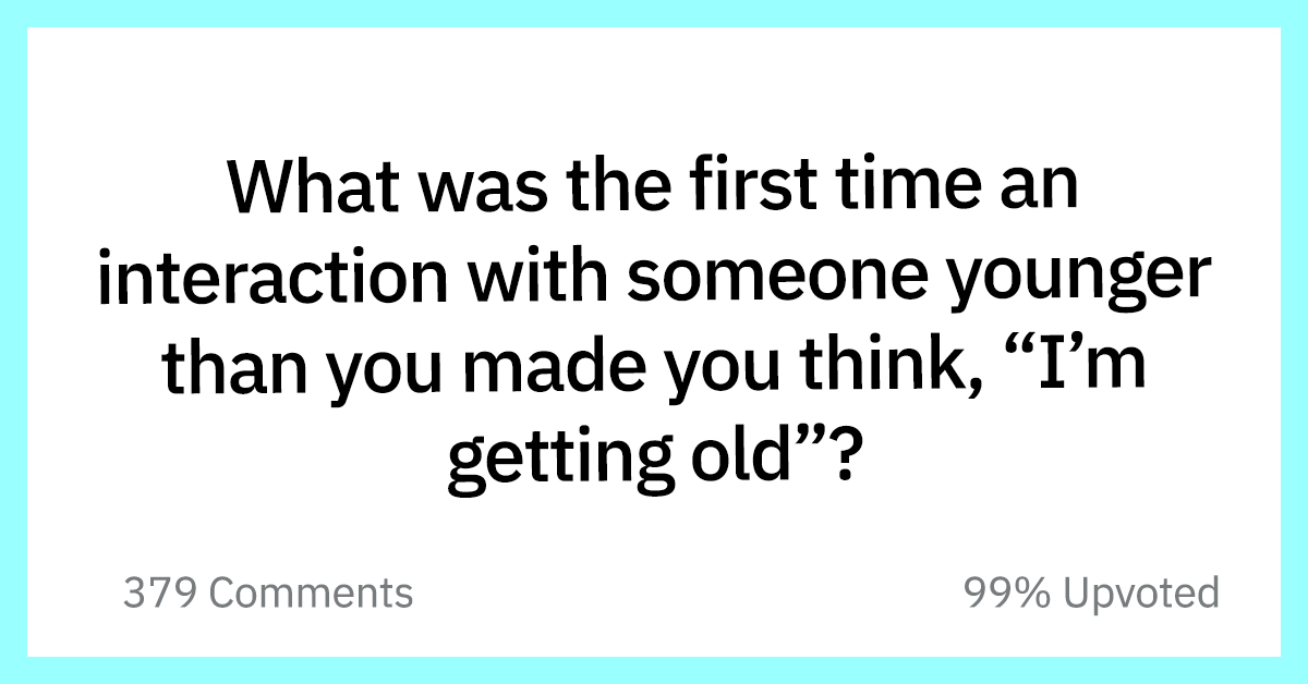 Here are the best responses to the question: “What was the first time an interaction with someone younger than you made you think, “I’m getting old”?: