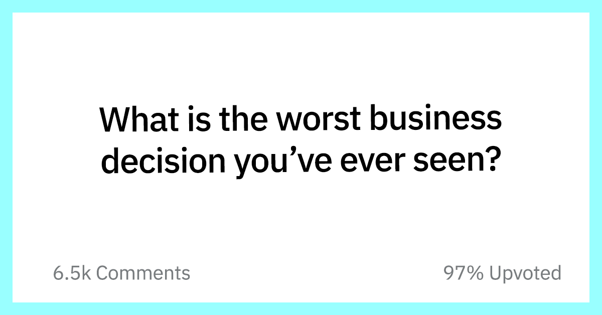 Here are the best responses to the questions: “What’s the worst business decision you’ve ever seen?”: