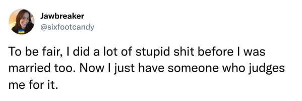 If you’re already married, these funny marriage tweets are perfect to send to your spouse to let them know you’re thinking of them.