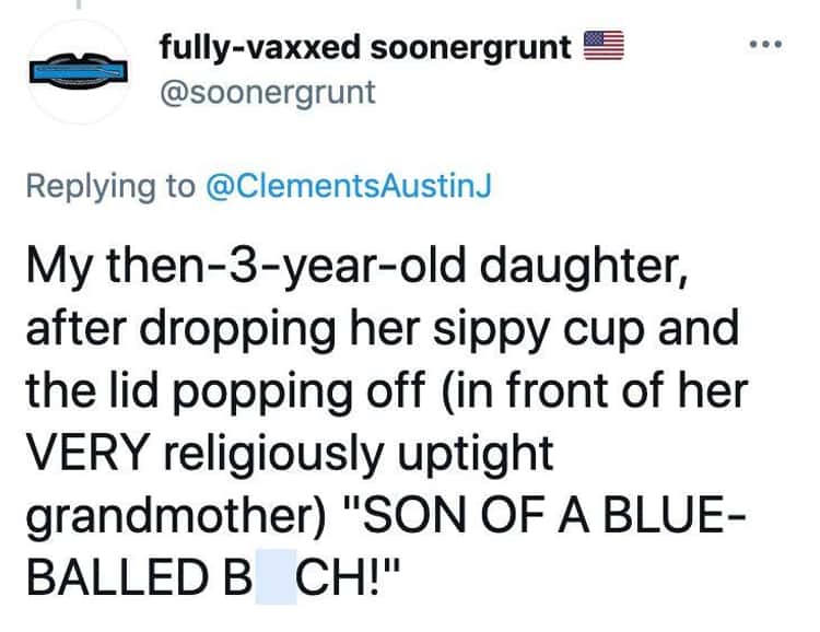Twitter user @ClementsAustinJ‘s child saw a snake and had a very honest, somewhat profane reaction to it, so naturally he fired off a tweet about it. This spurred other tweeters to share their own experiences with children who didn’t filter their thoughts before speaking, leading to hilariously uncensored moments that only kids could get away with.