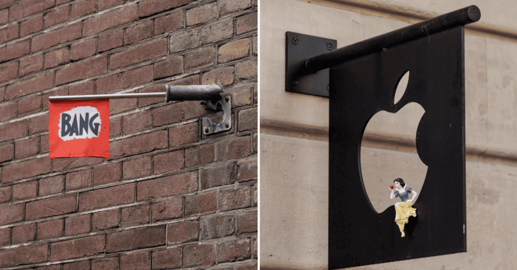 Meet Frank de Ruwe, a street artist from Amsterdam who operates under the alias “Frankey.” He is celebrated for his witty and understated transformations of public spaces. Whether it’s Darth Vader fishing in a canal or a street pole modified to resemble a sword, Frank’s inventive pieces pop up in surprising places, bringing a regular dose of surprise to onlookers.