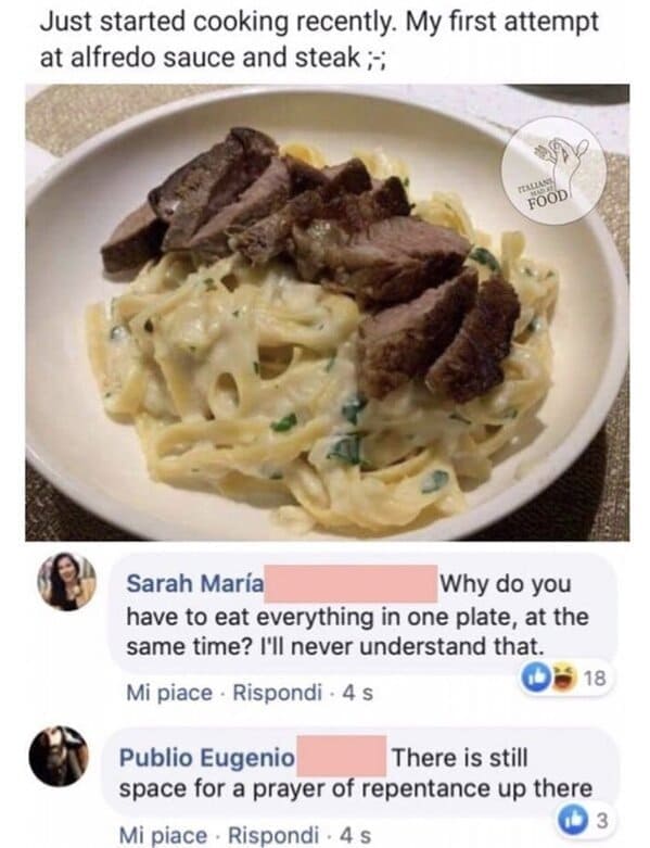 Anyway, these mean comments by Italians judging other people’s cooking are funny enough to forgive the atrocities people bragged about making.