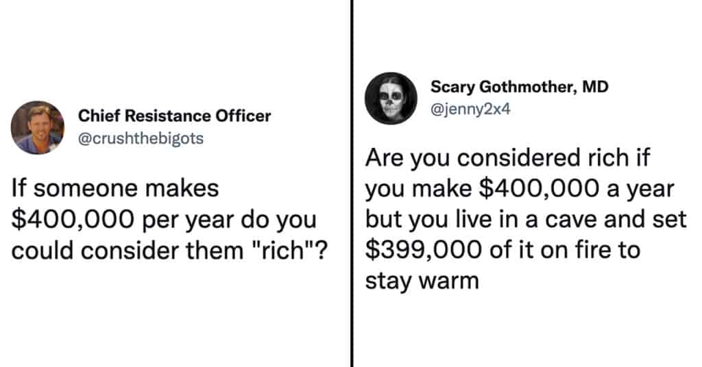Tweets Twitter Roasts Tech Entrepreneur Who Asked If Someone Making $400,000 A Year Is “Rich” ByDan October 15, 2021