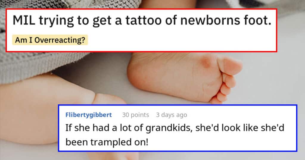 Reddit New Mom Has A Big Problem With Her MIL Getting A Tattoo Of Grandkid’s Footprint ByMike April 13, 2023