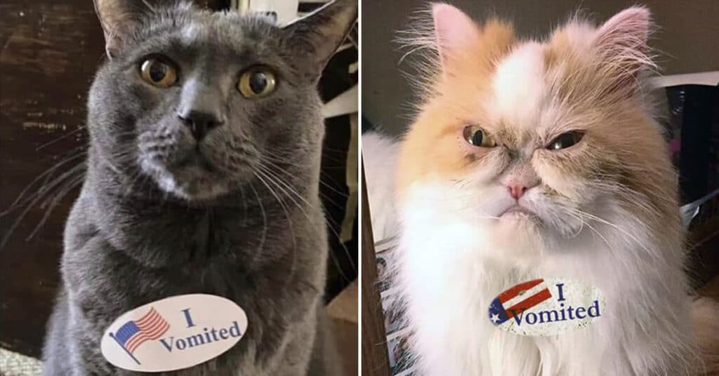 Funny Pics Cats Wearing ‘I Vomited’ Stickers Make Elections Worth It (10 Pics) ByTravis November 4, 2020